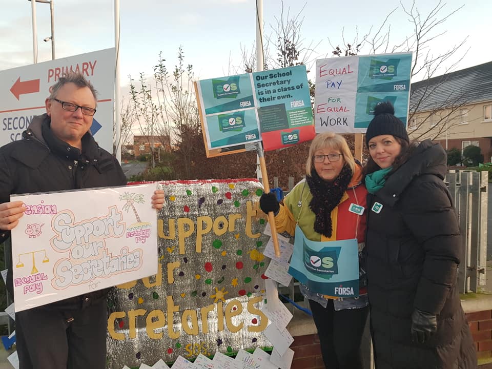 FÓRSA is seeking to address a reprehensible two tier pay system in existence for the last forty years which leaves most school secretaries, predominantly women, earning just €12,500 euro a year and on irregular short-term contracts with many having to sign-on for unemployment benefits during the school holidays.